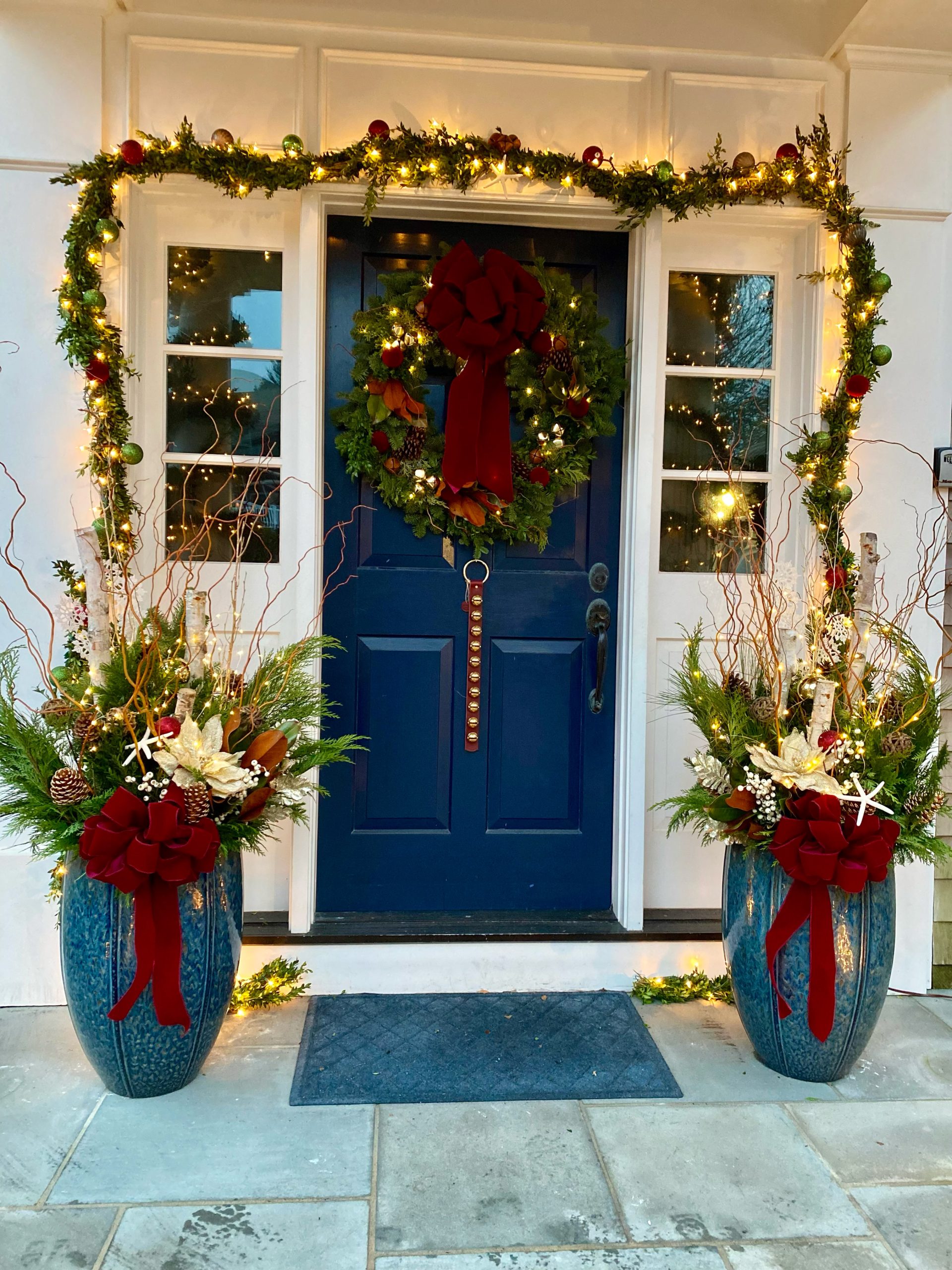 Many clients request us to prepare their properties for events and holidays, including weddings or other memorable family gatherings. They rely on us to help them create a space or moment that will create memories. We stock special plants in our shop nursery all year to prepare. We strive to be authentic with native and natural materials, especially in holiday door decorations.